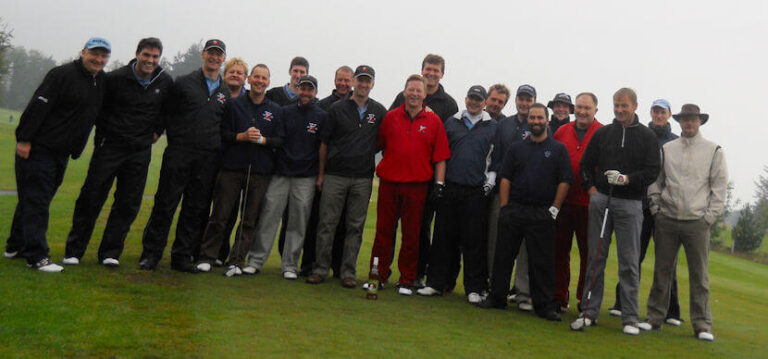 The stag-do where it all began. Was anyone taking it seriously? Superman saving shots on the course between vodka shots. A European Commissioner skinny-dipping in the lake by the 18th. Not to mention the antics off the golf course. WATSON lead on day 1 and inherited the golf virgin Garth Pepper. WALKER squared it all up with a final putt on the 18th in the final match taking it to a putt-out competition. All players missed the regulation “Gerald” putting distance, until the final putt where the WATSON captain sunk to take the inaugural trophy. Garth Pepper took man of the match and continues to display the original trophy on his mantlepiece at home. Need two years rest before we do all this again!
