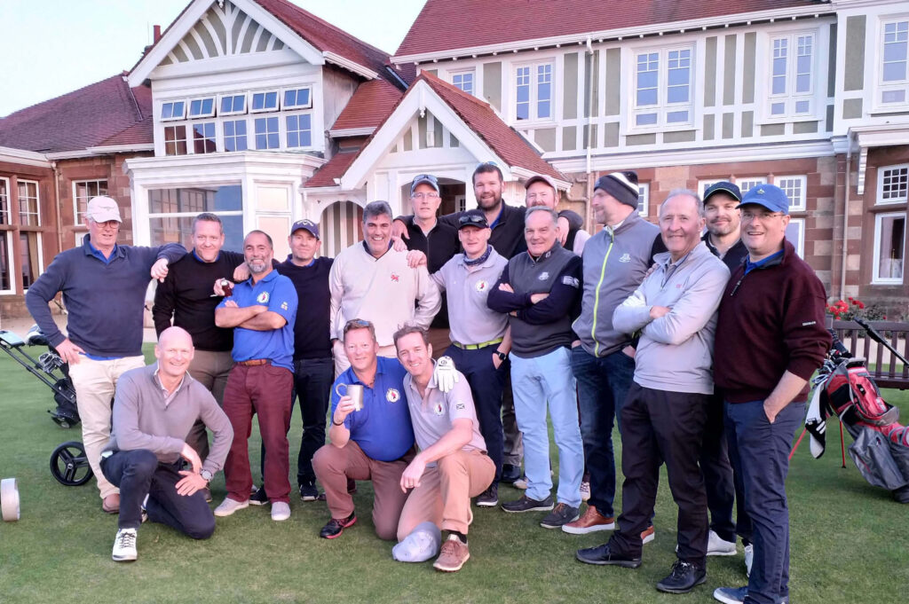 A record turn out for Ben to take the cup to his home turf in desperation for his first win. A good opening round greensomes at Brunston Castle gave WATSON a 2.5 to 1.5 lead. Following a break at the Ayr Gold Cup play resumed at Prestwick on Sunday morning with WALKER taking the first three greensomes matches to take the cup. The fourth match, with captains paired against each other, had WALKER up 3 with 4 to play, but WATSON managed to salvage a half point to avoid the whitewash following a shocking two foot putt missed by the opposing captain in front of his own clubhouse. A well deserved victory for WALKER and a sigh of relief from the captain as he finally added his name to the newly acquired official trophy.
