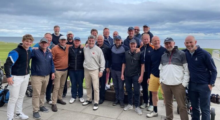 What a tour! Royal Dornoch Championship course on a perfect sunny day without a breath of wind kick started the tour in some style. The WATSON team lead by a slender 1 point despite a major collapse from the WATSON captain. The teams then retreated to Burghfield House to unwind and prepare for the following days action. An enjoyable Tain course provided the action for Saturday. Competition was strong with exceptional scoring being matched by both teams to keep the matches close (4 out of the 5 matches taken to the 18th green with the other being settled on the 17th. Check out the video for the dramatic finish to the 5th match of the day.), and the banter and baiting was equally strong. The WALKER team had reversed the score to lead by a point going into the final day Texas Scramble on the Dornoch Struie Course. Once again the matches were close, leaving it all down to the final match between the opposing captains and their partners. Despite a late charge from the WATSON pairing the inevitable happened as the match and the competition were closed out as the WALKER pair held for dormie 1 on the 17th giving the trophy to the WALKER team for the 4th successive year. Some sterling performances in the Burghfield Bar earned Stuart Lindsay the MVT award. With the presentation over, a mad rush for the airport began which meant the full tour team could not participate in Lawson Muncaster’s ‘Hole in One’ drinks for the shot of the tour on the Struie 2nd. The perfect finishing touch to a tremendous tour.